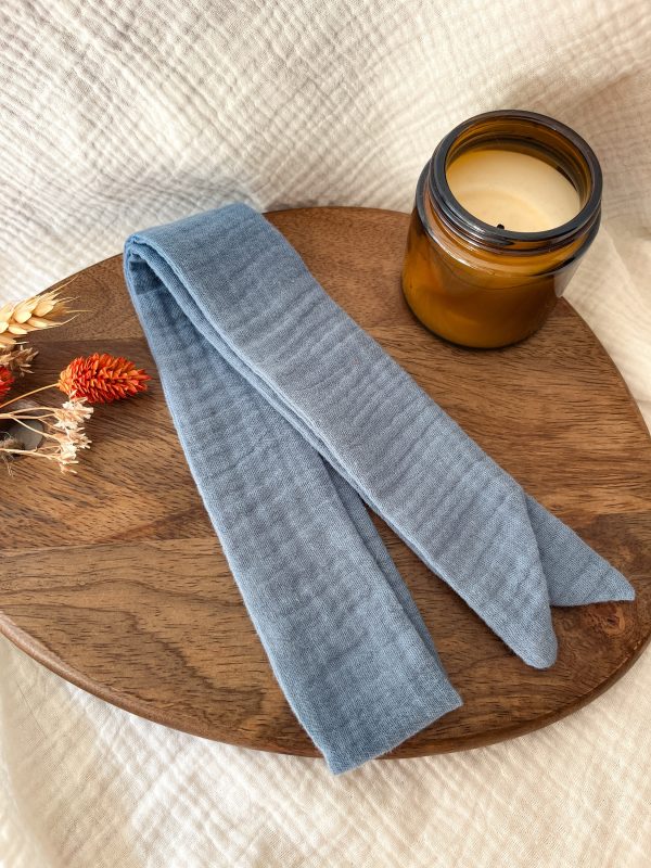 Foulard cousu à la main à Lille à partir de tissus de récupération, en gaze de coton bleu clair. À porter autour du cou, en bandeau autour de la tête, ou accroché à un chouchou pour le transformer en “foulchie”. Il apporte une touche d’élégance responsable à toutes vos tenues,…